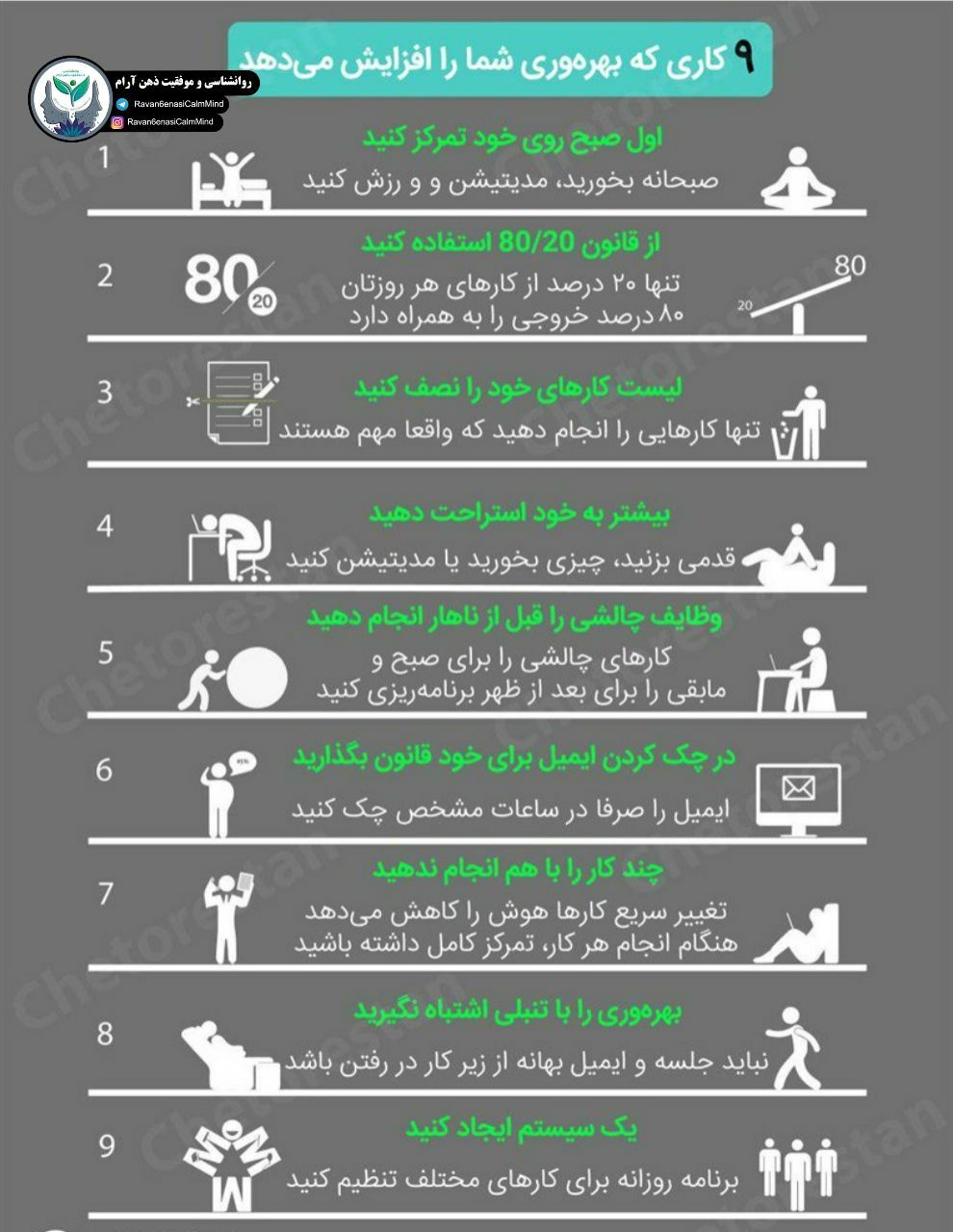 #اینفوگرافیک اگر احساس میکنید به اندازهی انرژی و زمانی که برای کارهایتان میگذارید نتیجه نمیگیرید، این نکات را فراموش نکنید ☝@ravanpajoohi